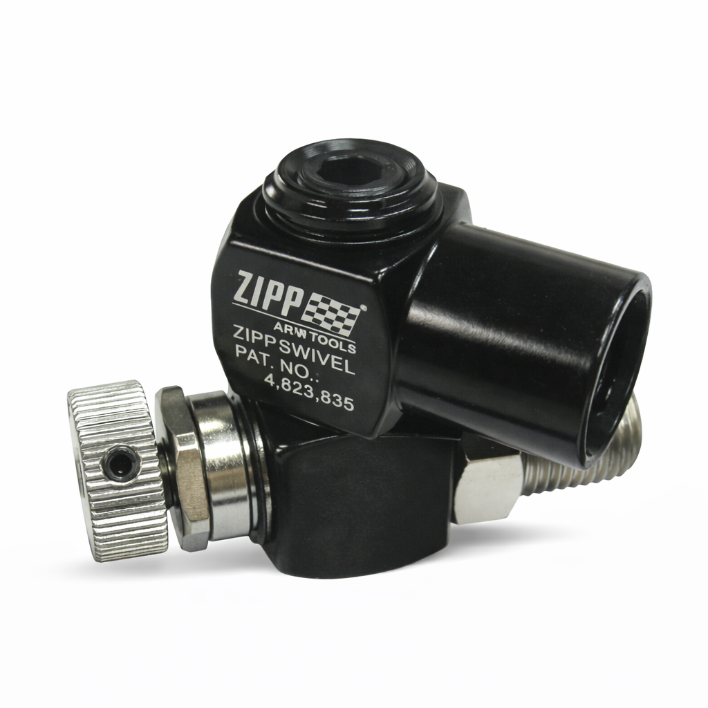 - The ZIPP SWIVEL is a patented, uniquely designed “Universal Swivel Air Inlet Joint” that connects portable air tools to an airline. It swivels 360º to let the hose hang straight down to the floor, no matter how the tool is held.
